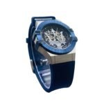 The Maserati Potenza automatic watch is available in various models, but generally features an automatic movement, a skeleton or open-heart dial showcasing the internal mechanism, and 100 meters of water resistance. Case sizes are typically 40mm or 42mm